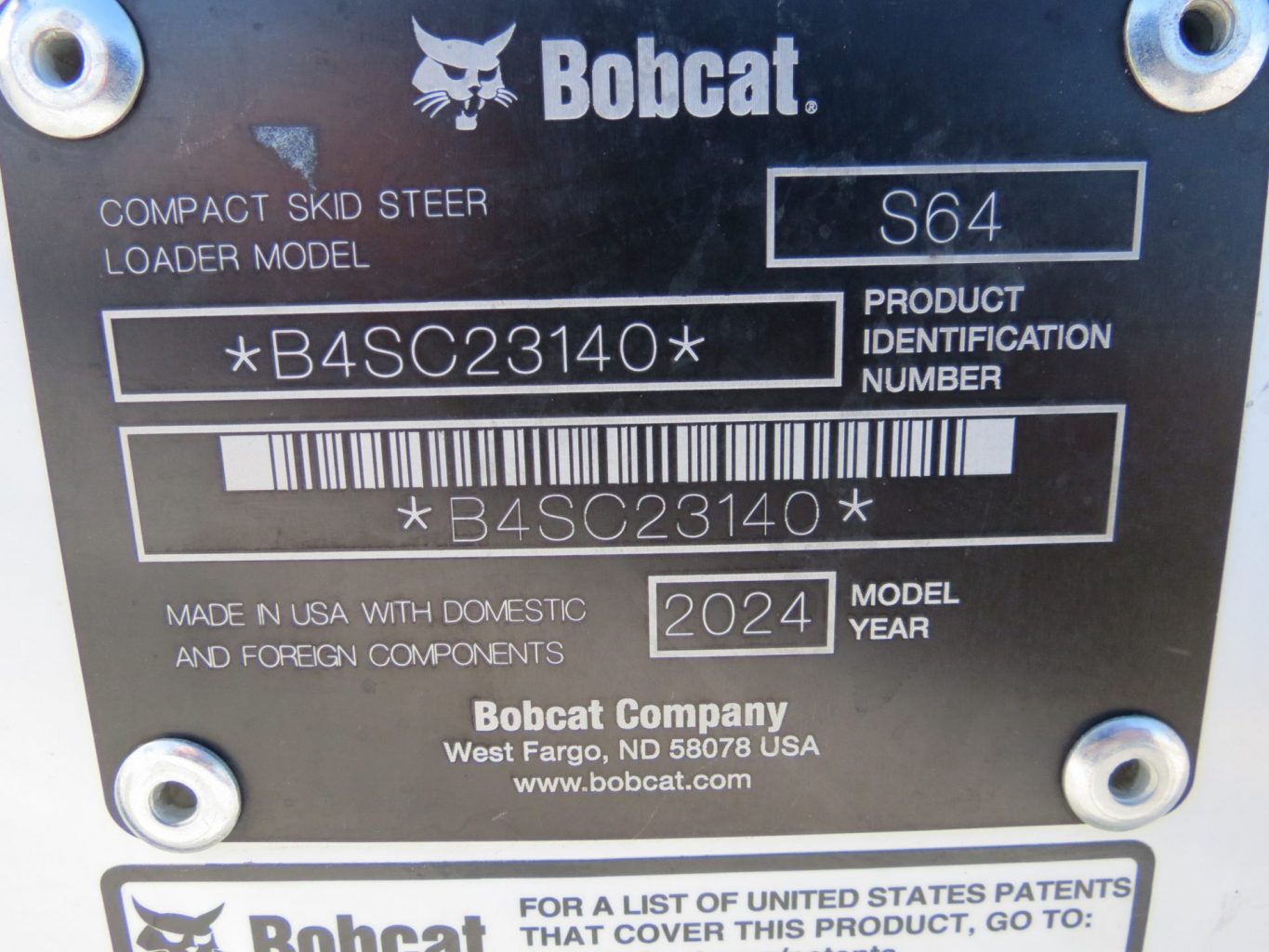 This is a used 2024 Bobcat S64 with the following features: